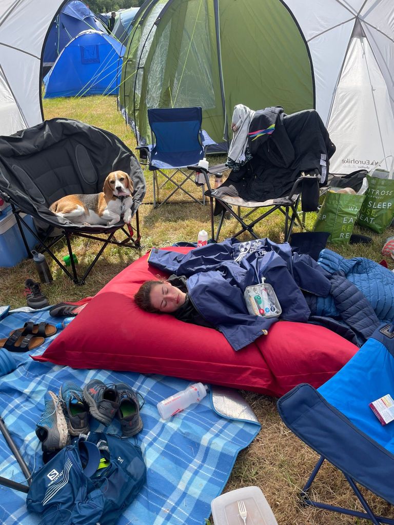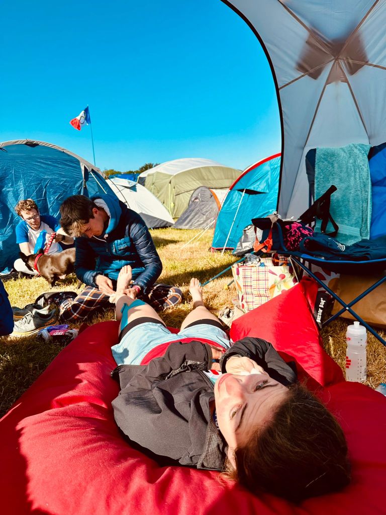 Towards the end of this lap, my calf started cramping on my left leg, and my achilles was feeling less than fresh. Having suffered for months previously with achilles tendonitis, I decided that this was to be the last lap. I’d achieved my goal, and 20 hours on course was plenty enough for me. I crossed the finish line around 8am and stumbled to the team camp, with thoughts of brushing my teeth keeping my legs moving. After munching on cakes, crisps, and other sugary foots for 20 hours, my mouth was disgusting. With teeth brushed, I collapsed on the beanbag in the centre of the team camp and didn’t get up for a good long while. Time passed strangely as I kept falling asleep without warning, then waking up an unknown amount of time later.